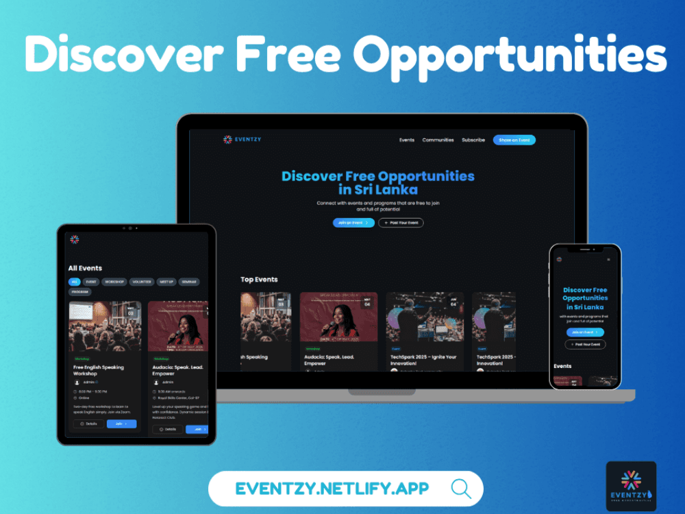 Discover Free Opportunities in Sri Lanka. Users can post or view events on our WhatsApp bot and Our Website Eventzy