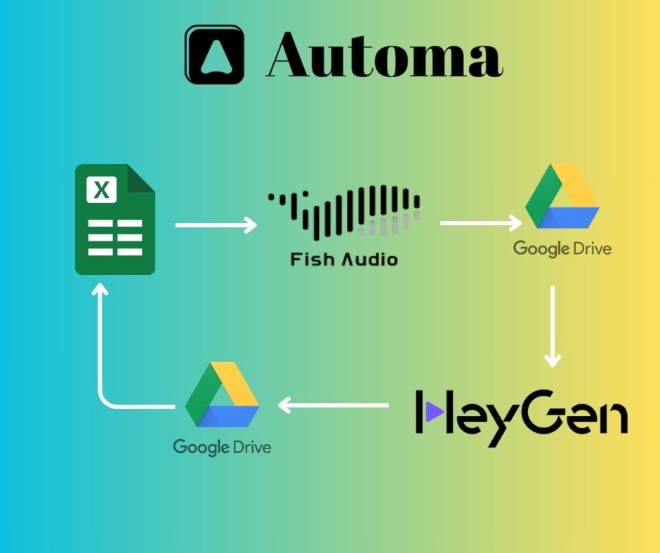 · Then goes to Heygen, uploading the generated audio, generating videos, and uploading to Google Drive