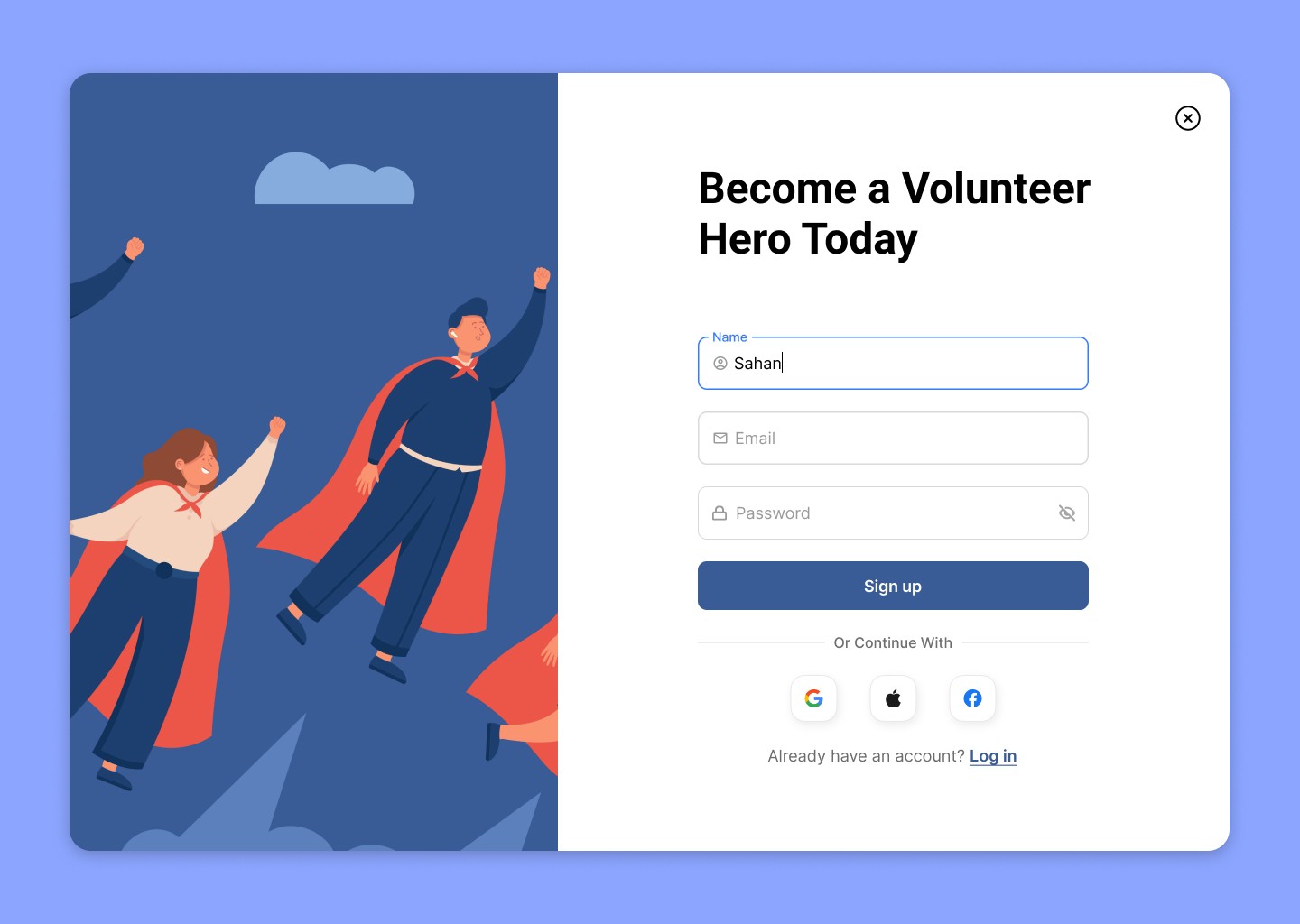 This landing page invites users to "Become a Volunteer Hero Today" with a visually striking and user-friendly design. This project focused on empowering users to take action, the design employs bold visuals and a clean, intuitive form layout to encourage sign-ups.